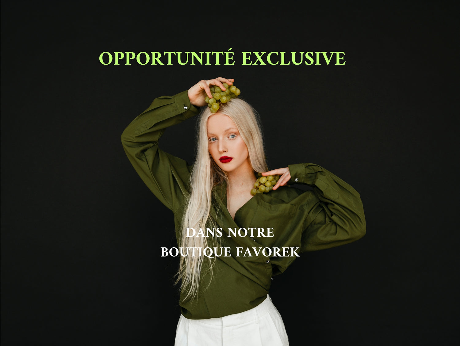 Découvrez Favorek, votre nouvelle référence pour la mode féminine sophistiquée et moderne. Chez Favorek, nous sommes convaincus que chaque femme mérite de se sentir confiante et élégante dans ses vêtements. Parcourez notre collection soigneusement sélectionnée de tenues et d'accessoires, alliant les dernières tendances à une allure intemporelle.